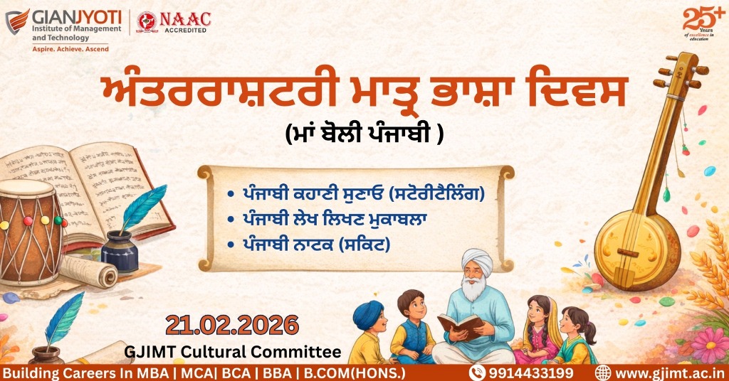 On the occasion of International Mother Language Day, the Cultural Committee of GJIMT organized “Lafzan Di Mehfil”, a Punjabi Poem Recitation Competition, to celebrate the beauty, richness, and cultural significance of the mother tongue, Punjabi.