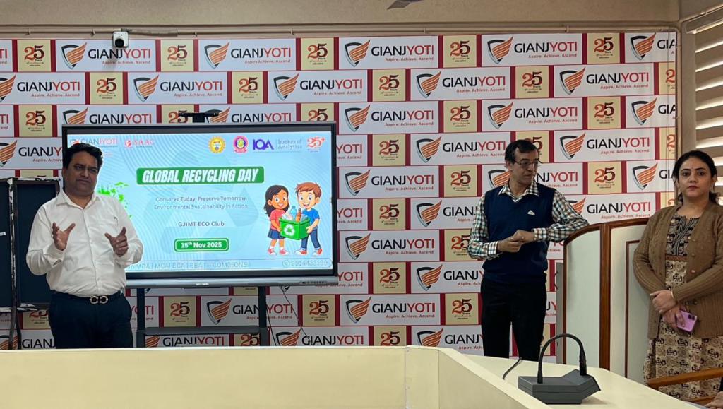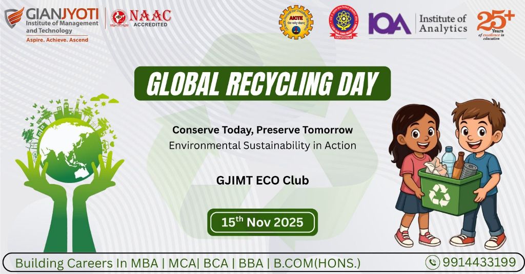 The Eco Club of GJIMT successfully organized an impactful event on Global Recycling Day under the theme “Conserve Today, Preserve Tomorrow: Environmental Sustainability in Action.”The initiative aimed to promote environmental consciousness, responsible waste management, and sustainable practices among the campus community.