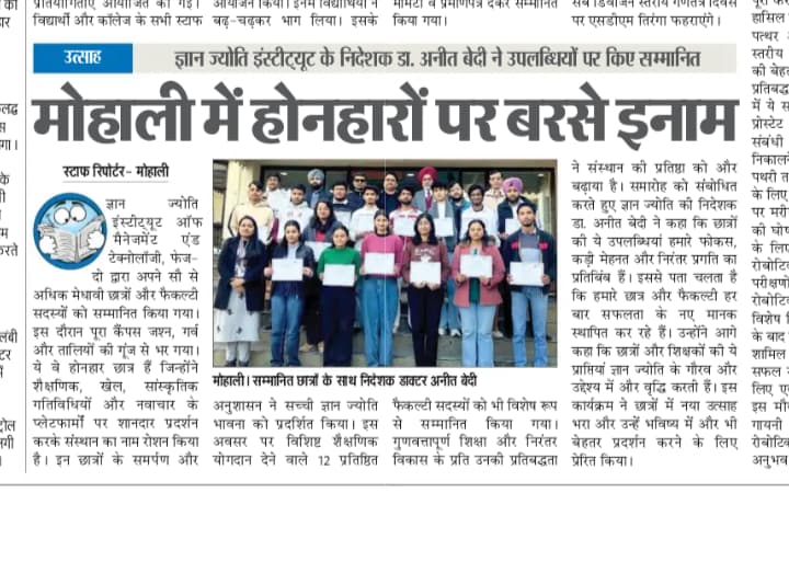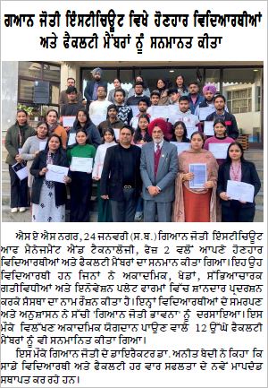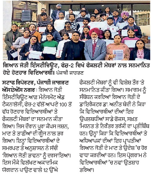Gian Jyoti Institute of Management and Technology (GJIMT), Mohali, organized a GATE Meeting on 21st January 2026 at the campus to motivate and guide students toward higher academic achievements and competitive examinations. The session focused on academic planning, effective preparation strategies, and future opportunities through GATE.