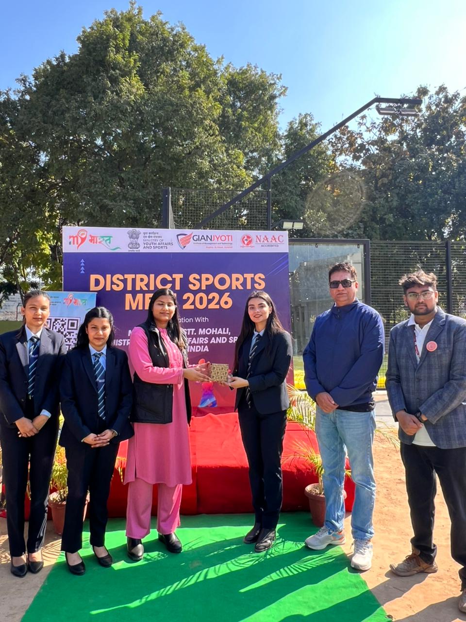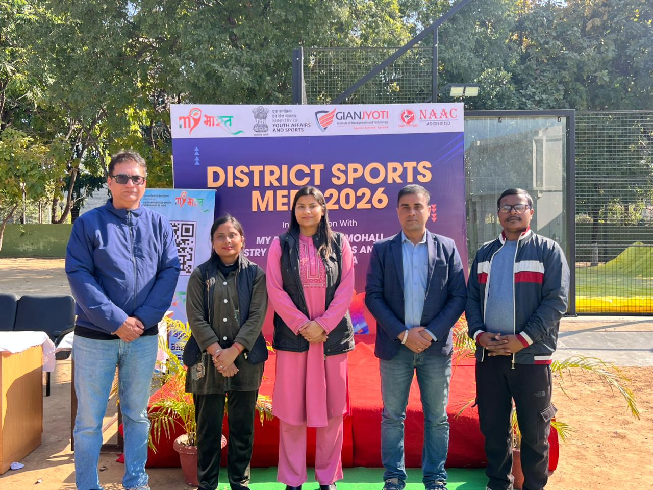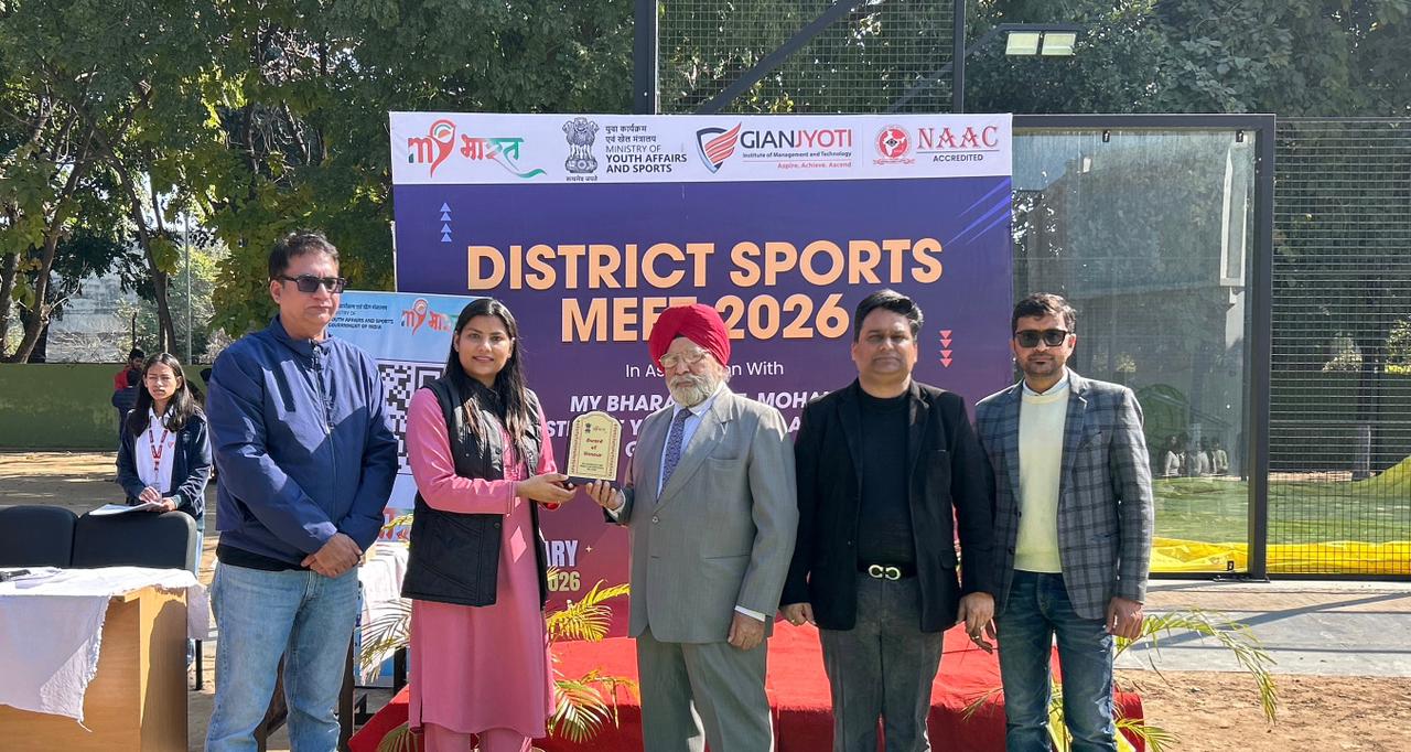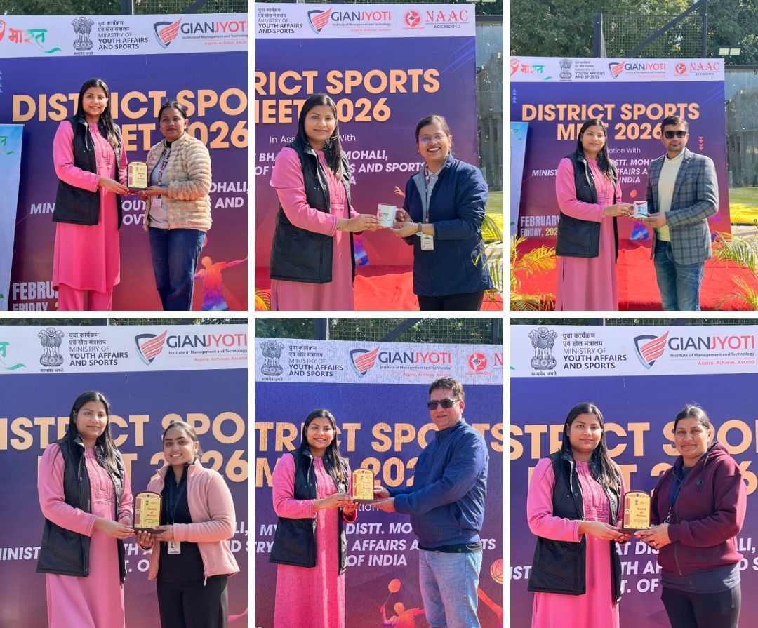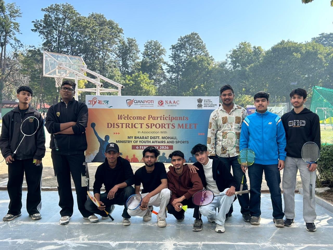 The Fit India Club of Gian Jyoti Institute of Management and Technology (GJIMT), in association with MY Bharat, District SAS Nagar (Mohali), and Ministry of Youth Affairs and Sports, Govt. of India, successfully organized the District Sports Meet 2026, showcasing high energy, teamwork, and sportsmanship.