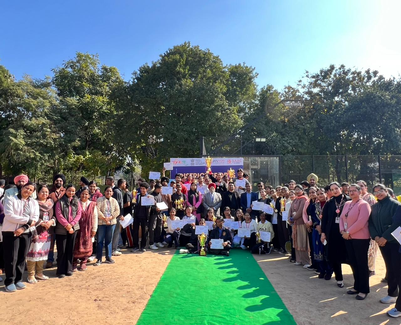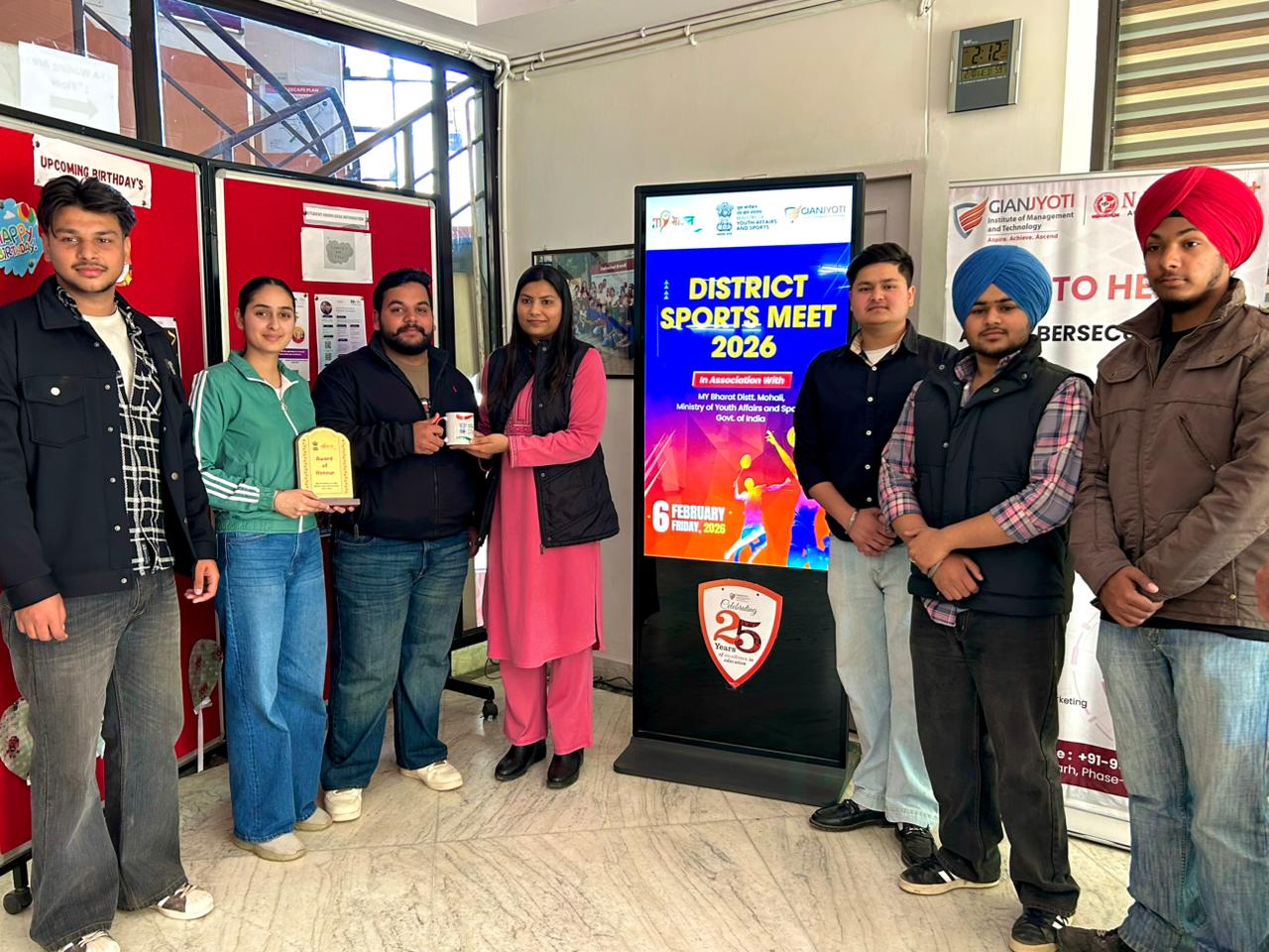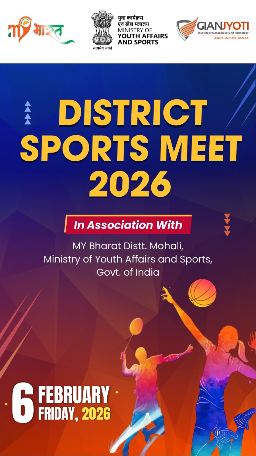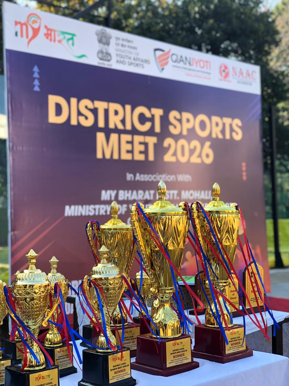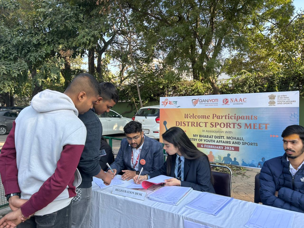 The Fit India Club of Gian Jyoti Institute of Management and Technology (GJIMT), in association with MY Bharat, District SAS Nagar (Mohali), and Ministry of Youth Affairs and Sports, Govt. of India, successfully organized the District Sports Meet 2026, showcasing high energy, teamwork, and sportsmanship.