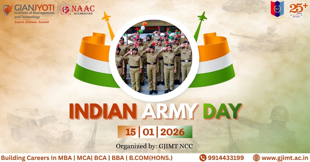 Gian Jyoti Institute of Management and Technology (GJIMT), Mohali, celebrated Indian Army Day with great enthusiasm and patriotic fervour to honour the bravery, sacrifice, and unwavering dedication of the Indian Army. The event aimed to instil a deep sense of nationalism, discipline, and respect for the armed forces among students.