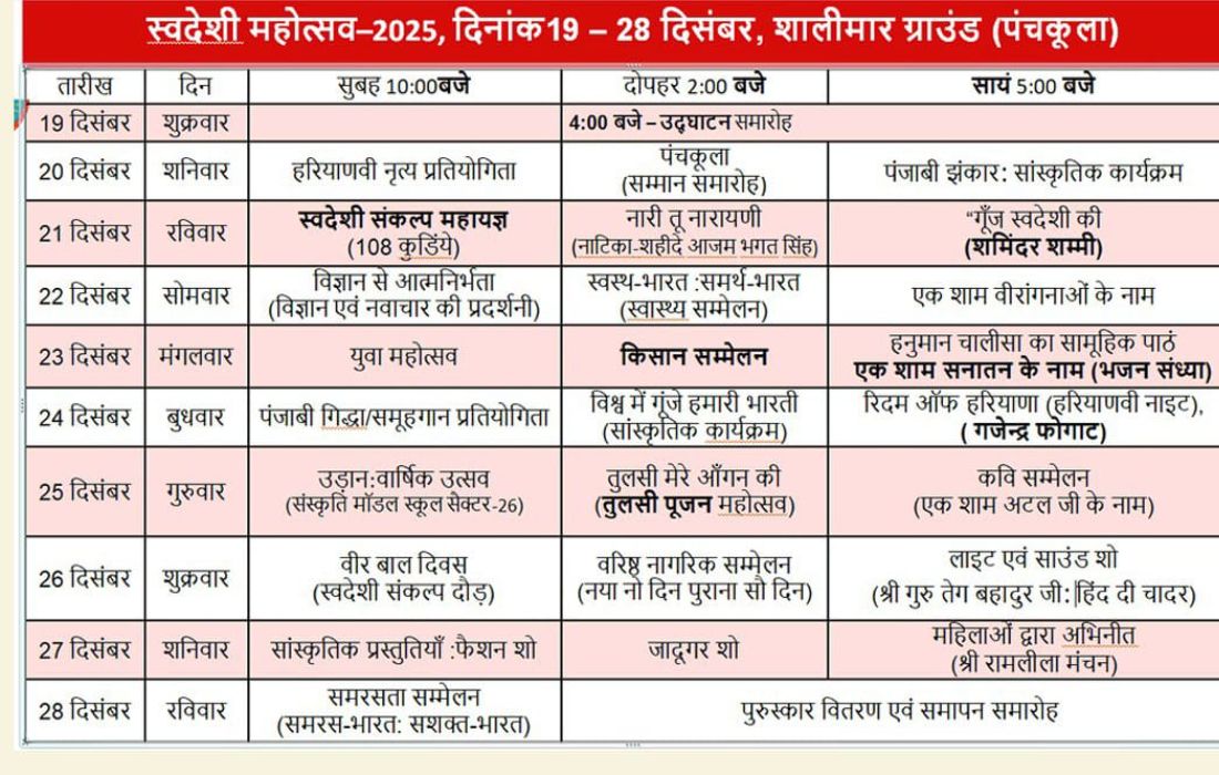 Venue: Parade (Shalimar) Ground, Sec 5, Panchkula.
