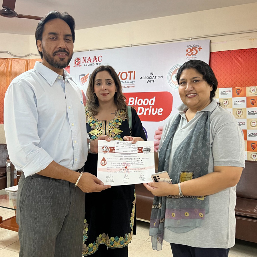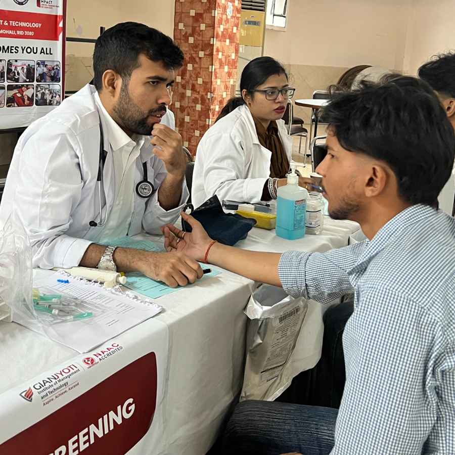 Gian Jyoti Institute of Management and Technology, Mohali, organized a Mega Blood Donation Drive on 28th October 2025 at the GJIMT Basement, in collaboration with PGIMER Chandigarh. The event was jointly coordinated by the NCC and NSS Clubs of GJIMT, continuing the institute’s proud legacy of blood donation drives since 2001.