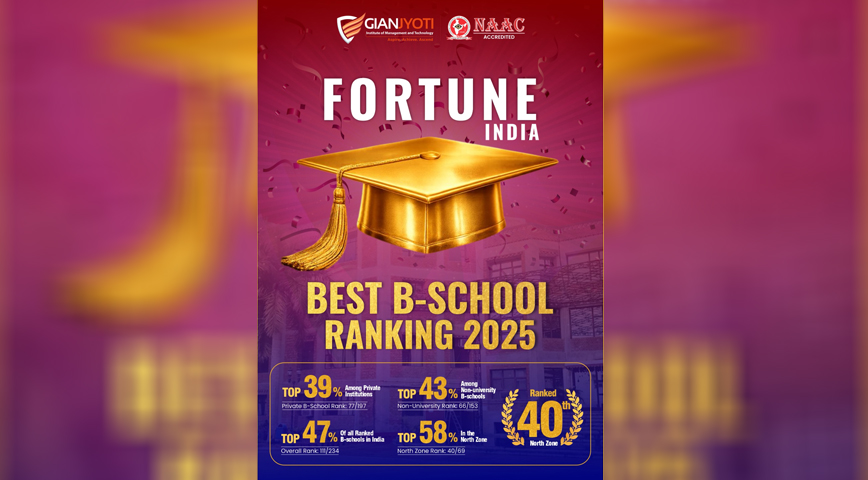 Gian Jyoti Institute of Management and Technology (GJIMT), Mohali, has been recognised in the Fortune India Best B-School Rankings 2025, marking another milestone in its academic journey.