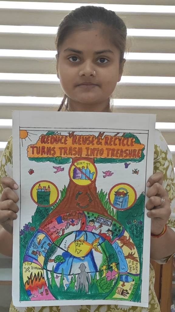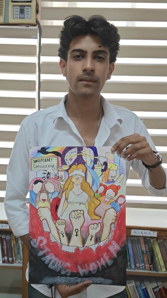 Participants created posters on meaningful themes such as Say No to Drugs, Say No to Plastics, Say No to Tobacco, Strong Women Strong Society, Spread Love Not Hate, Discipline and Dedication for a Better India, and My Vote My Right. The competition witnessed enthusiastic participation from 45 students along with 4 faculty members, making the event both creative and thought-provoking.