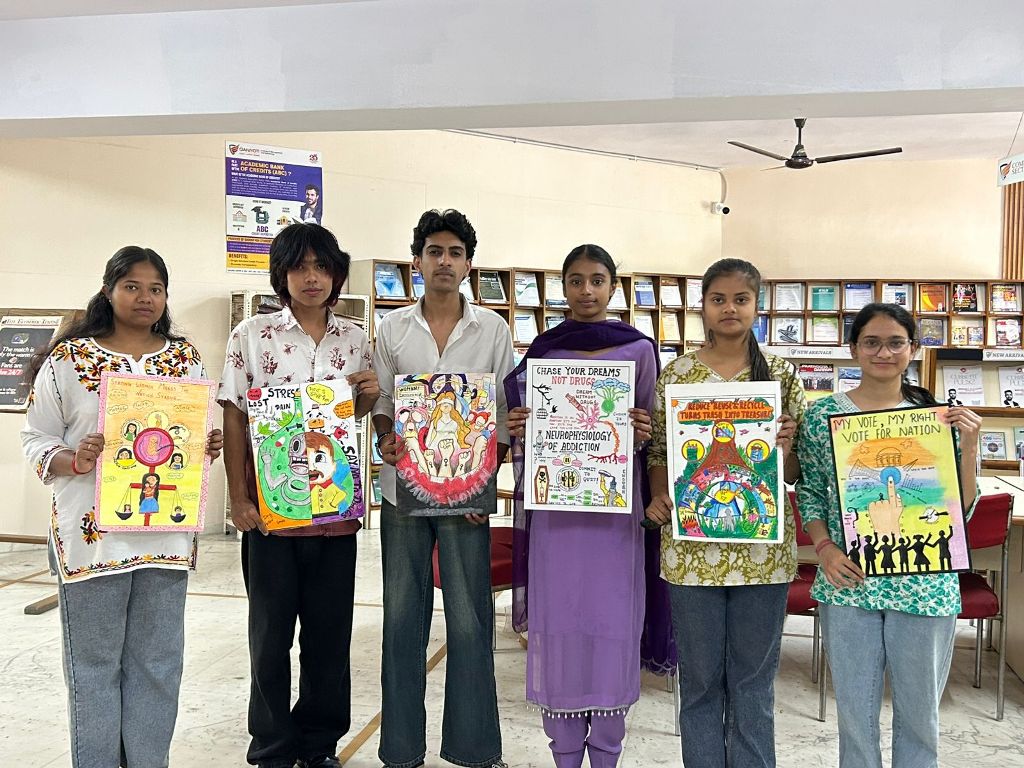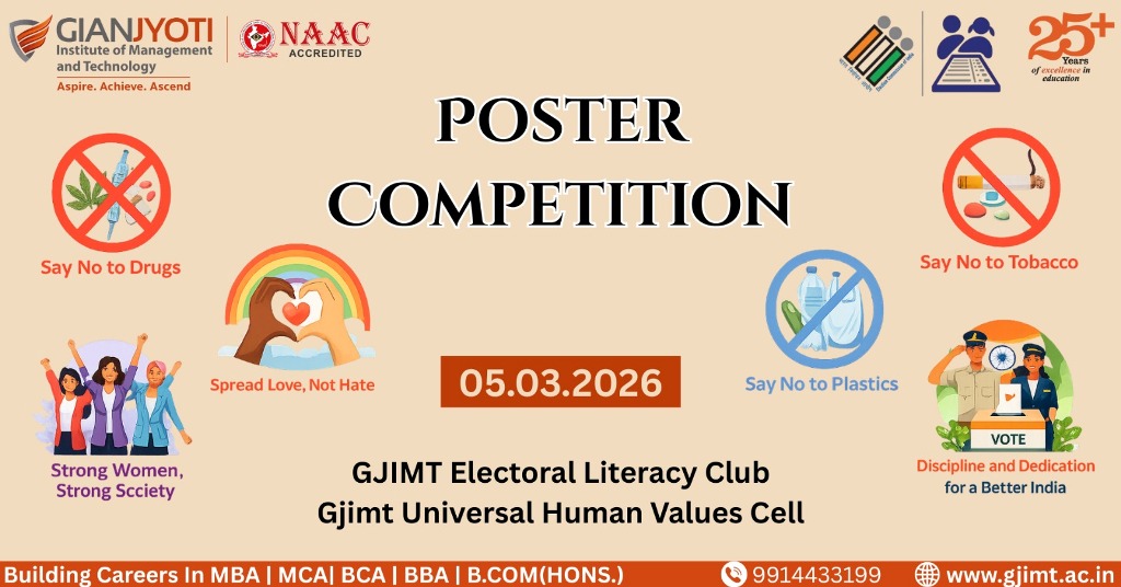 The Universal Human Values Cell in collaboration with the Electoral Literacy Club organized a Poster Making Competition at the GJIMT Library to encourage students to express their views on important social themes. The activity aimed to promote awareness, creativity, and responsible citizenship among students.