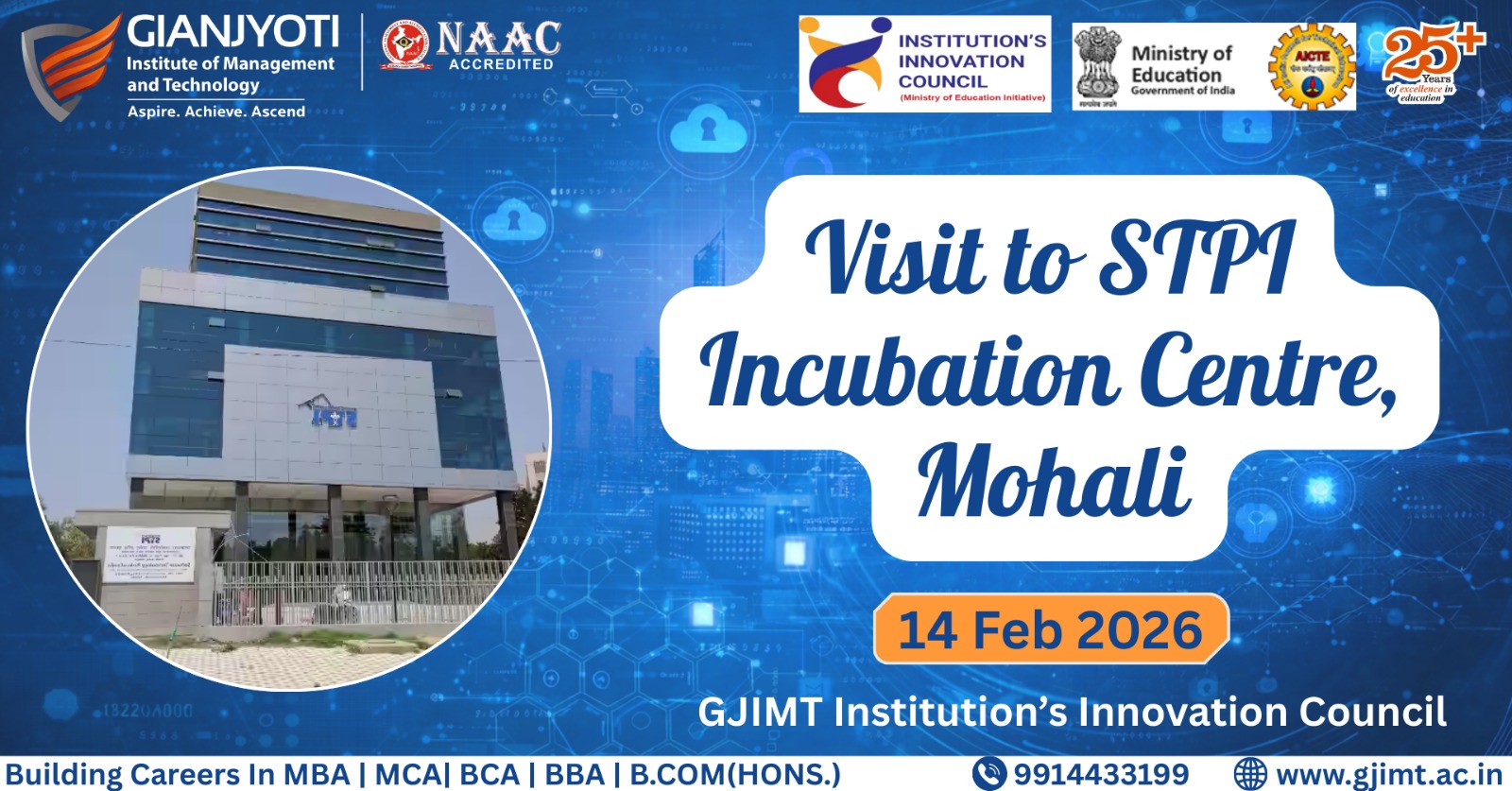 The Institution’s Innovation Council (IIC) of GJIMT organized an exposure visit of Govt School Students to the STPI Incubation Centre, Mohali under the DICE (Developing Innovation Culture & Entrepreneurship) initiative of the Ministry of Education’s Innovation Cell. The visit aimed to provide practical exposure to the innovation and startup ecosystem.