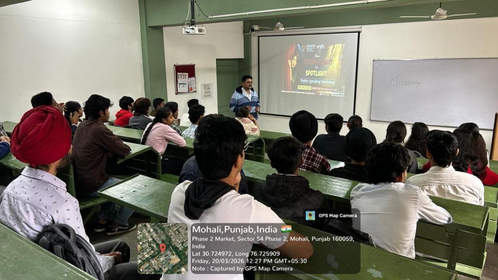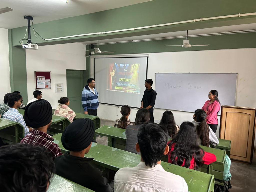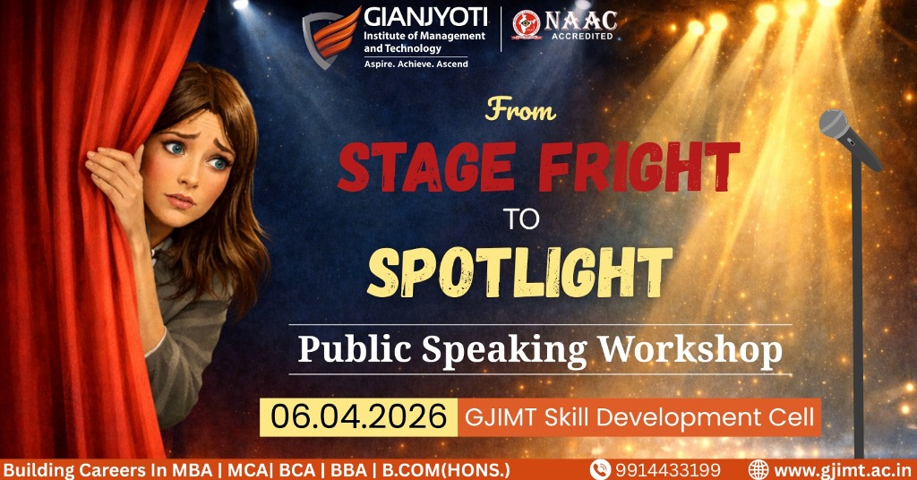 The Skill Development Cell of GJIMT successfully organized a workshop titled “From Stage Fright to Spotlight: Public Speaking Workshop” with the objective of helping students overcome stage fear and build confidence in public speaking.