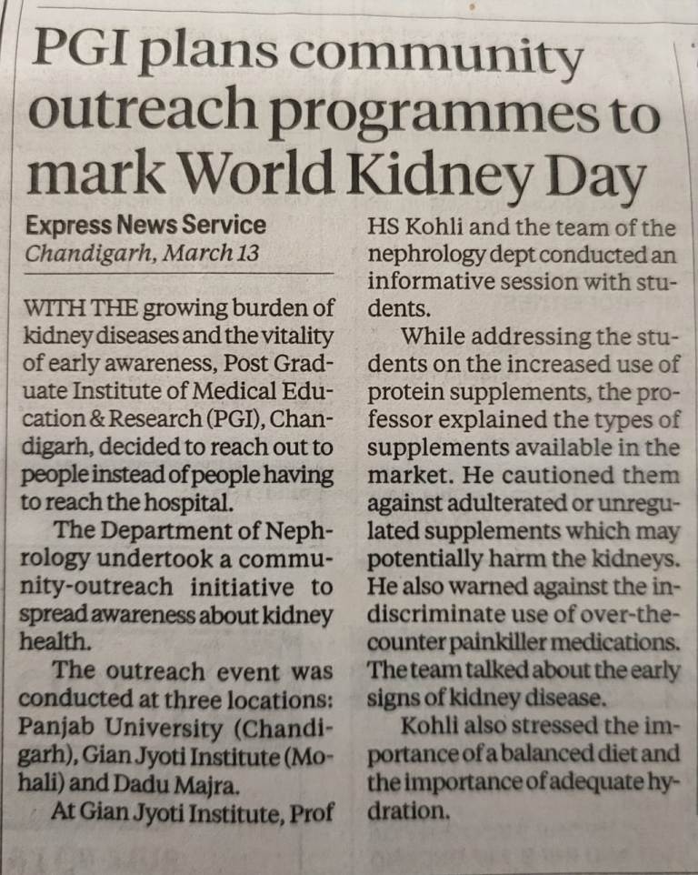 The experts highlighted the importance of a balanced diet, adequate water intake, regular physical activity, and timely medical check-ups for maintaining kidney health. Students actively interacted with the doctors and sought guidance on lifestyle habits affecting kidney function.