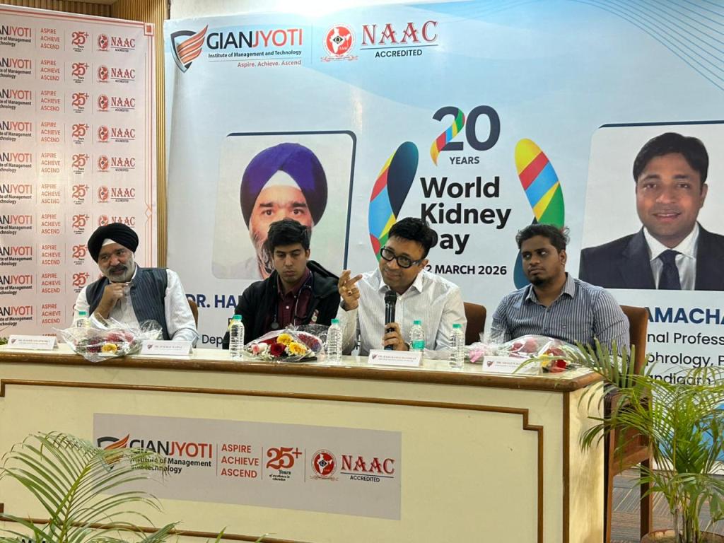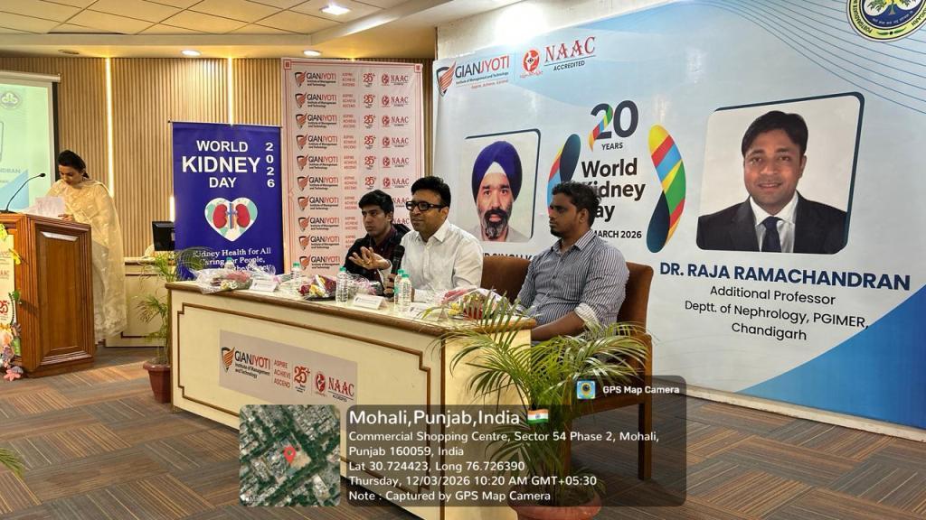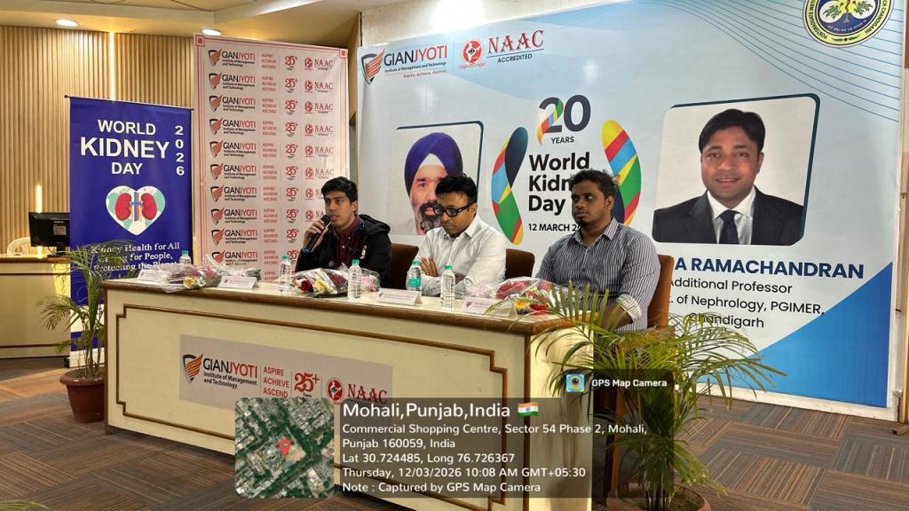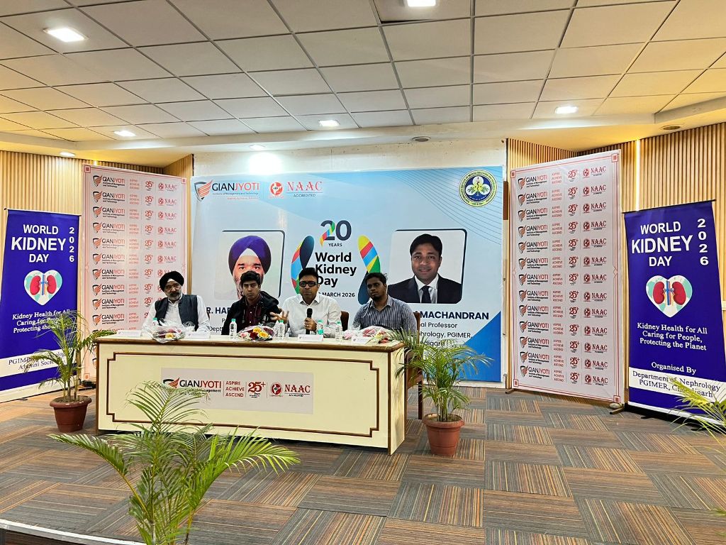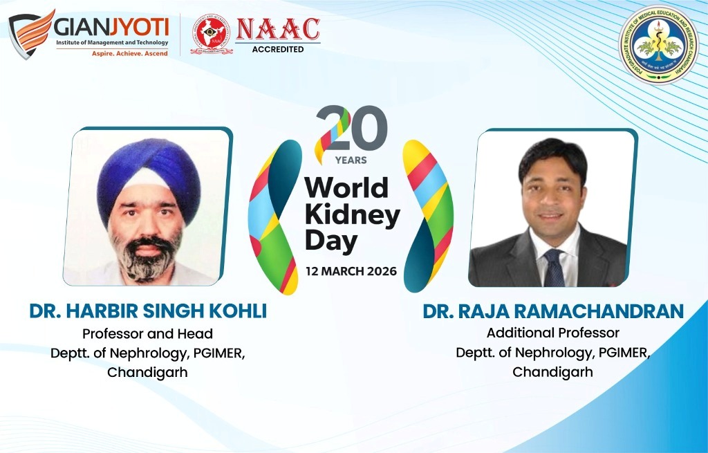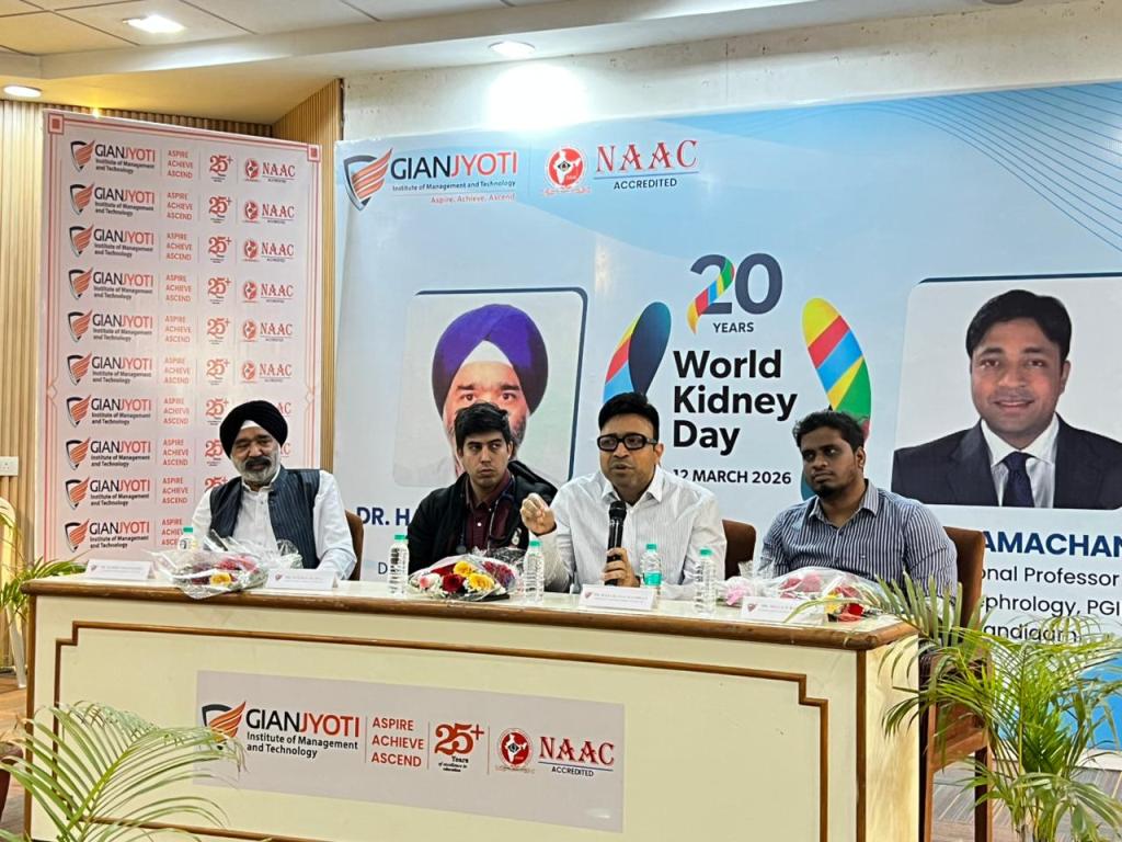 Gian Jyoti Institute of Management and Technology (GJIMT), Mohali, observed World Kidney Day with an expert information session by senior doctors from PGIMER, Chandigarh. The programme took place in the institute auditorium and saw active participation from students and faculty members.